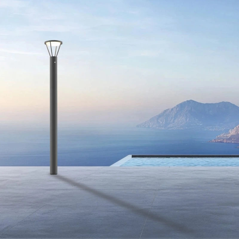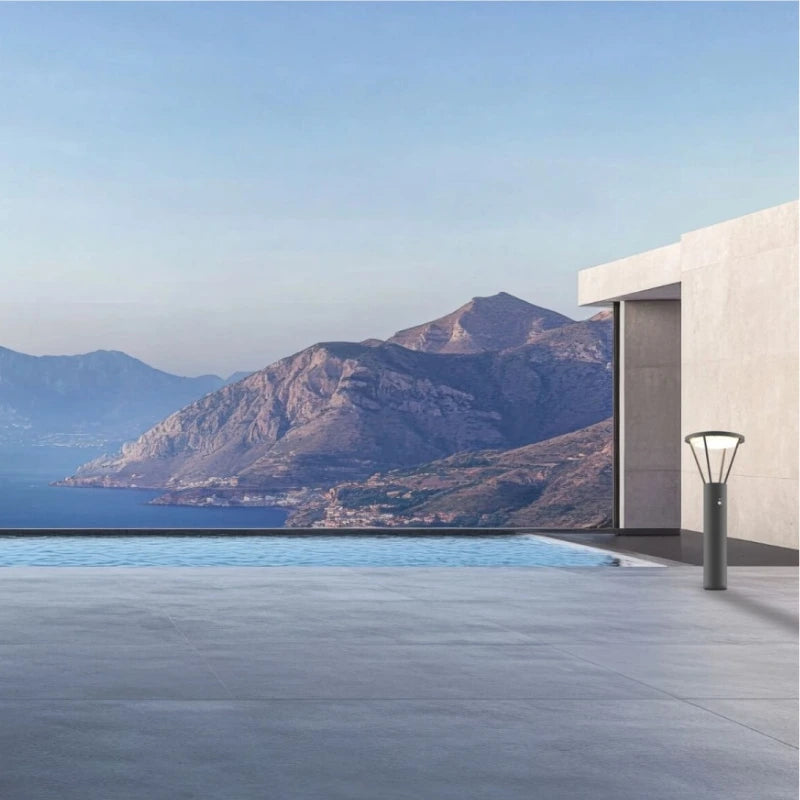Questo paletto luminoso (bollard light) si distingue per il suo design scultoreo, angolare e fortemente architettonico, ideale per illuminare vialetti, ingressi o aree esterne in contesti moderni e minimalisti.