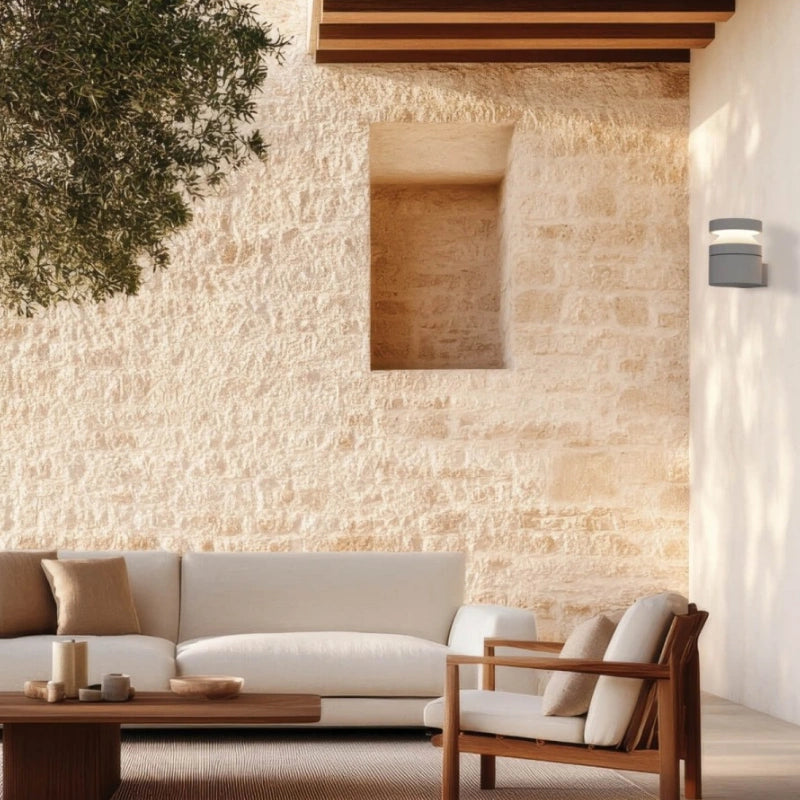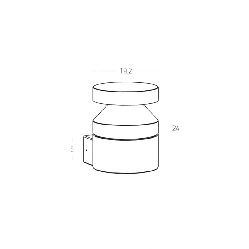 Questo applique da esterno combina un design cilindrico contemporaneo con una funzionalità di illuminazione che ne esalta l'impatto visivo e l'atmosfera.