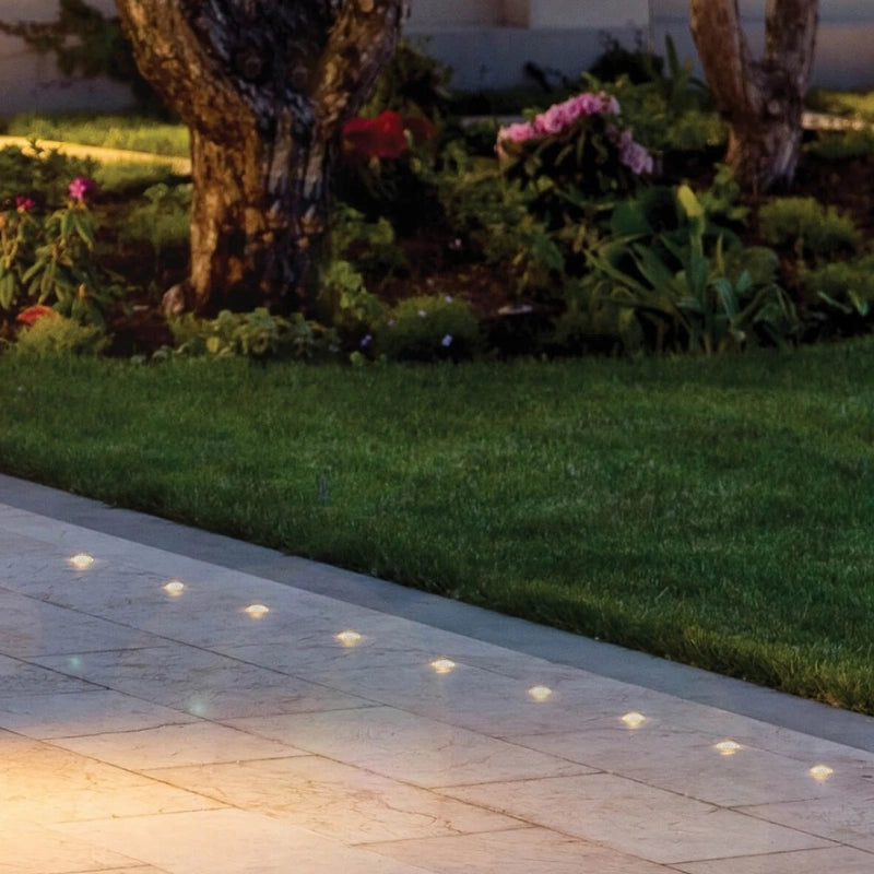 Questi sono faretti a incasso (o segnapasso) progettati per l'installazione a filo pavimento in ambienti esterni come camminamenti, bordi piscina e terrazzi.