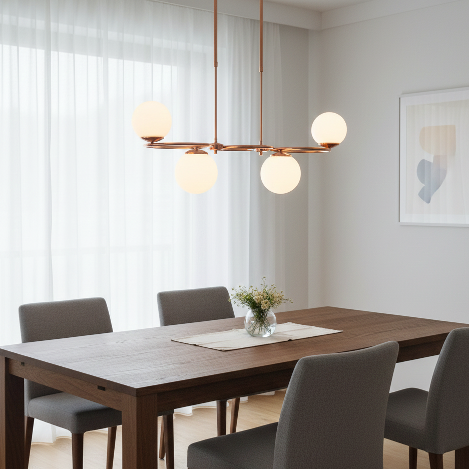Ogni sfera bianca è una testimonianza di squisita maestria, modellata meticolosamente alla perfezione con contorni lisci e linee delicate. Questi sfere fungono da punti focali, diffondendo la luce con un bagliore morbido e luminoso che inonda la stanza di una delicata radiosità.