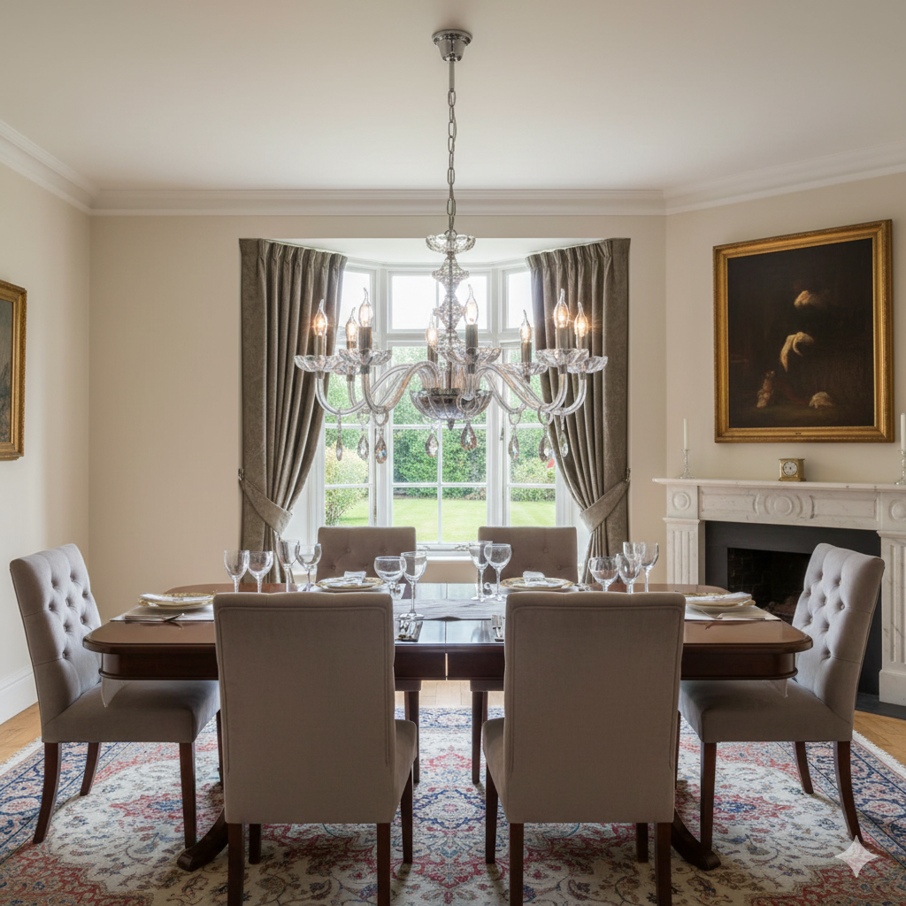 Eleganza cristallina è disponibile anche nella versione con 6 luci e nella versione con finitura cromo.