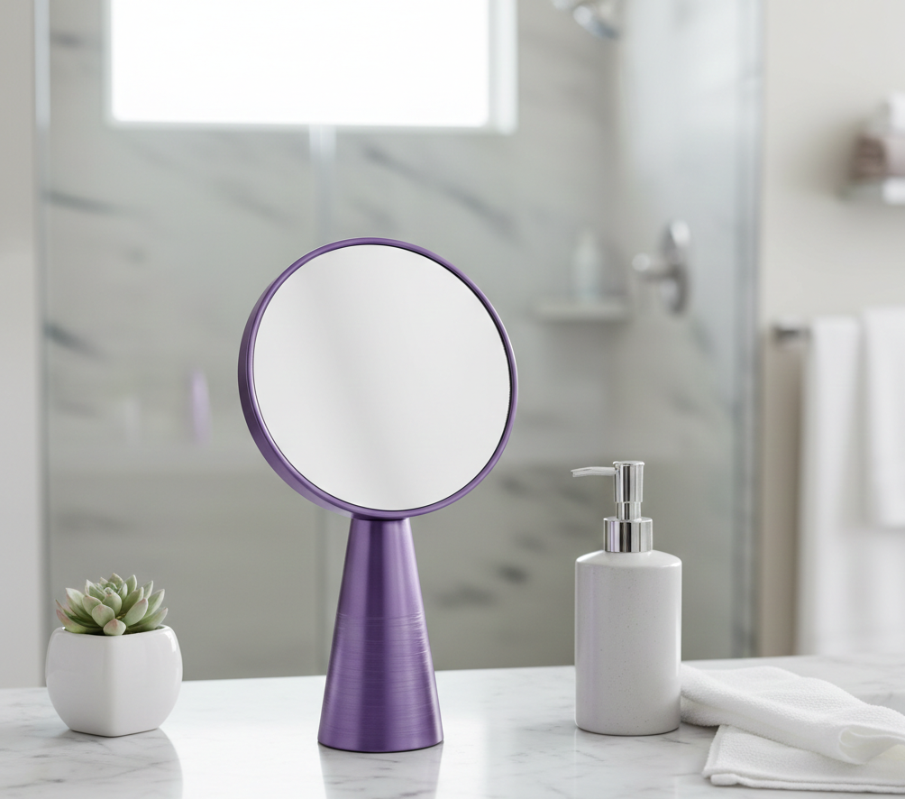 Eleva l'estetica del tuo angolo beauty con Era, la specchiera da appoggio che unisce funzionalità quotidiana e arte contemporanea.