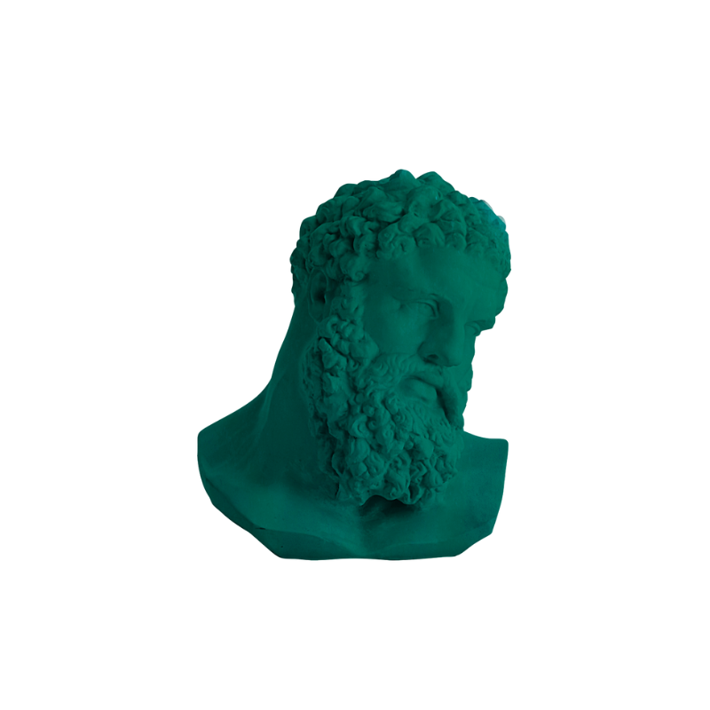Il busto ritrae il leggendario semidio greco nella sua iconografia più celebre, ispirata al celebre Ercole Farnese. L'opera cattura l'essenza della forza matura, caratterizzata da una barba folta e riccioli definiti che incorniciano un volto dall'espressione fiera e, al tempo stesso, riflessiva.