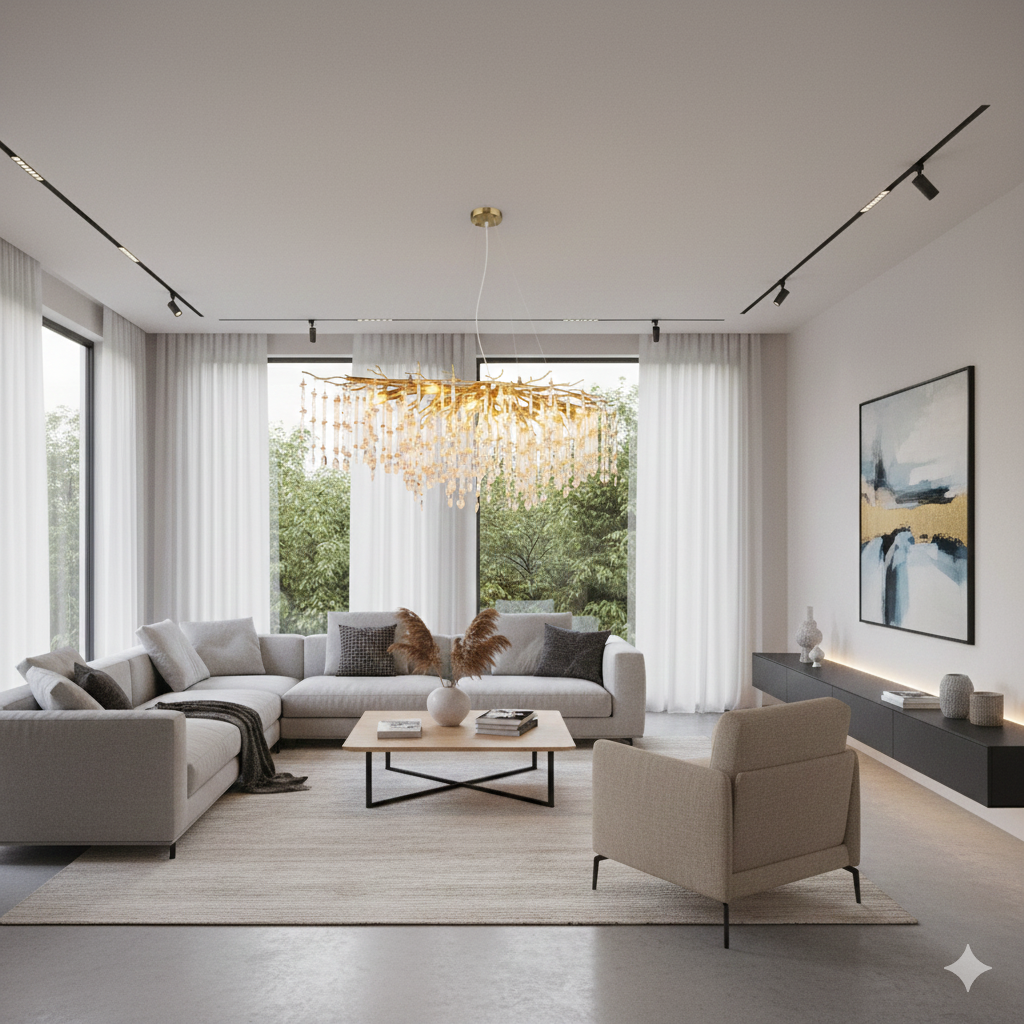 La sospensione Gloria non è solo un corpo illuminante, ma un vero e proprio gioiello d'arredo che trasforma il soffitto in un giardino di cristallo.