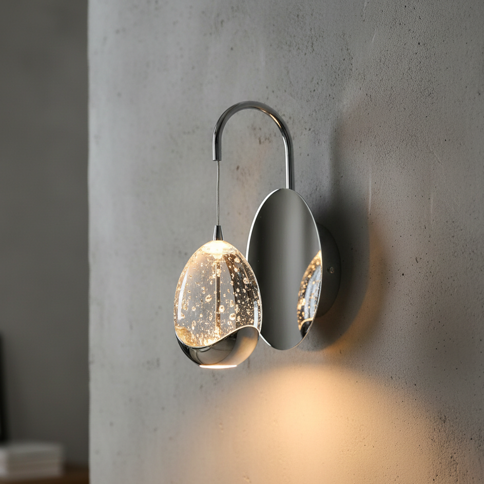 Golden Egg è un'applique a LED dal design moderno ed elegante che si contraddistingue per la sua forma a uovo stilizzata e la combinazione di cristallo pulegoso e metallo. Il cristallo pulegoso cattura la luce e la diffonde in modo omogeneo, creando un'atmosfera calda e accogliente in qualsiasi ambiente. L'applique è dotata di una lampadina LED integrata a luce calda (3000K) che non è dimmerabile. Le dimensioni compatte dell'applique la rendono ideale per essere installata in diversi ambienti, come soggiorni, camere da letto, corridoi e ingressi.