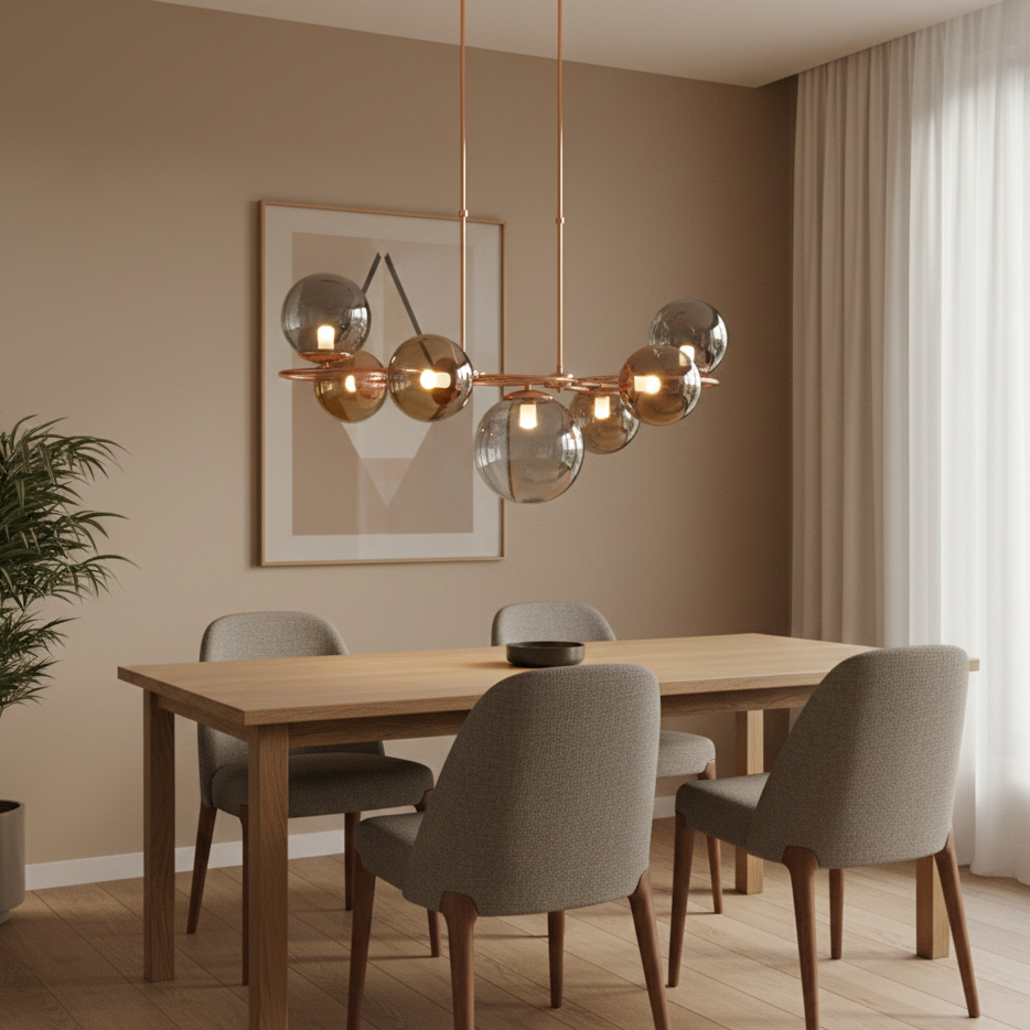Il lampadario "Golden Glow" è un'icona di bellezza affascinante che offre un'esperienza di luce e design senza tempo. Le sfere di vetro trasparente incastonate in una cornice dorata creano un'atmosfera luminosa ed elegante che trasforma lo spazio in cui è collocato. Il design del lampadario è caratterizzato da una lavorazione artigianale meticolosa e da una cura dei dettagli impeccabile. La struttura dorata scintillante, decorata con filigrane delicate e dettagli intricati, emana un senso di ricchezza e raffinatezza senza eguali. Ogni globo di vetro trasparente cattura e riflette la luce in modo stupefacente, creando un'illuminazione calda ed invitante che conferisce un'atmosfera di bellezza eterna alla stanza. Le sfere di vetro mostrano una superficie liscia e cristallina che diffonde la luce in modo delizioso, creando un'atmosfera avvolgente che affascina i sensi e stimola l'immaginazione. L'attenzione al dettaglio e la maestria degli artigiani sono evidenti in ogni sfera di vetro, rendendo questo lampadario un'opera d'arte che lascia senza parole.