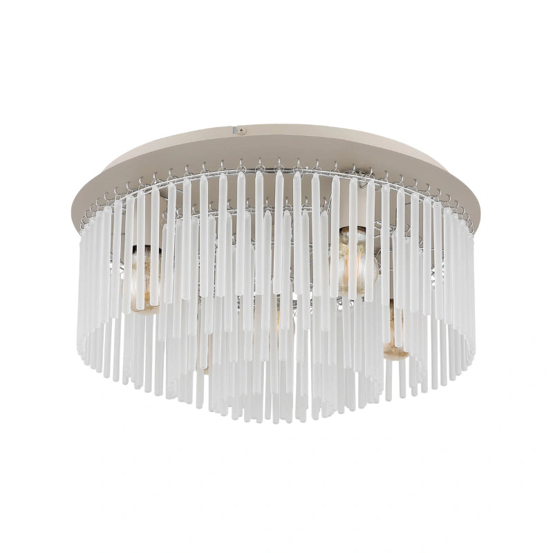 - Plafoniera metallo color sabbia satinato, metallo cromato, bacchette di vetro satinato