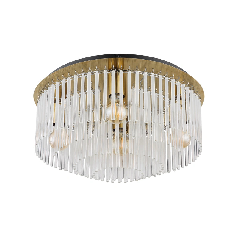 - Plafoniera metallo color oro satinato, nero, bacchette di vetro opale, trasparente