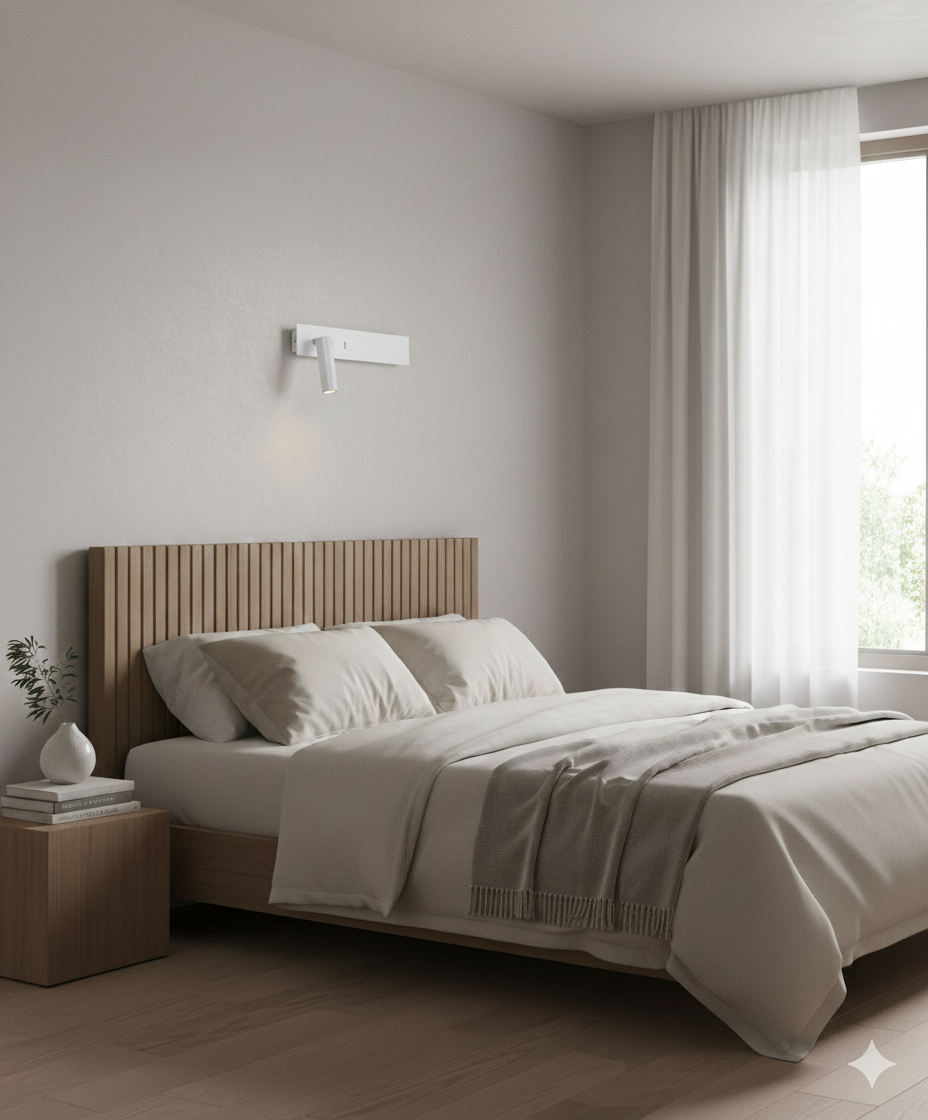 L'applique H52 offre un design flessibile e una mobilità totale, rendendola la soluzione di illuminazione ideale per le camere d'albergo.