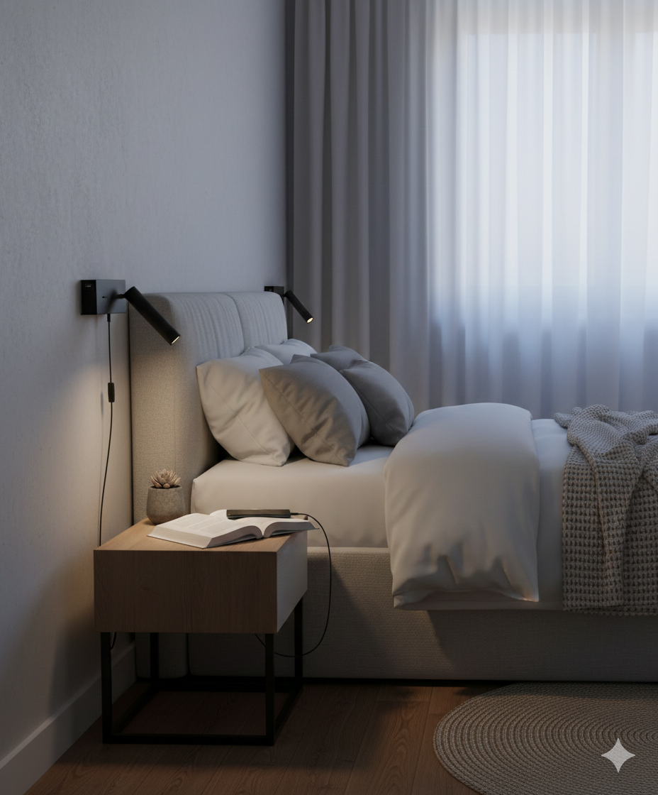 L'applique H75 è una soluzione di illuminazione d'interni versatile e moderna, ideale per le camere d'albergo.