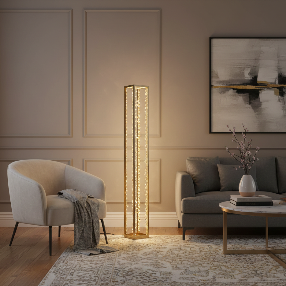 Halo Magnificenza è una lampada da terra dal design moderno ed elegante che si contraddistingue per la sua forma slanciata e sinuosa e per la presenza di elementi in quarzo naturale che impreziosiscono la struttura in metallo finitura oro o cromo satinato. La luce LED integrata a 3000K crea un'atmosfera calda e accogliente, diffondendosi in modo omogeneo grazie ai cristalli di quarzo. La lampada è dimmerabile, permettendo di regolare l'intensità della luce in base alle proprie esigenze.