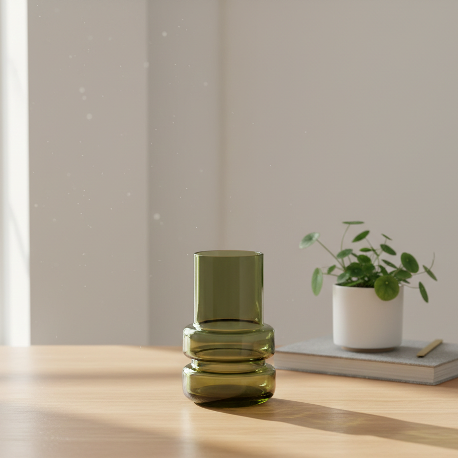 Il vaso Herm è un complemento d’arredo dal carattere deciso, che fonde un’estetica minimalista con un gioco di volumi scultorei. Realizzato in vetro soffiato di alta qualità, questo pezzo si distingue per la sua capacità di interagire con la luce, creando riflessi profondi e cangianti.