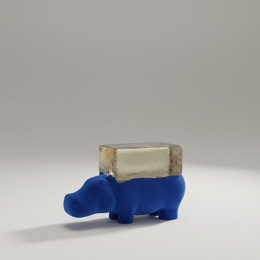 Hippo Wagon è un oggetto d’arredo dal carattere deciso e surreale. Questo pezzo unico gioca sul contrasto tra la morbidezza visiva del mondo animale e la rigidità geometrica di un carico prezioso, creando un equilibrio visivo che cattura immediatamente lo sguardo.