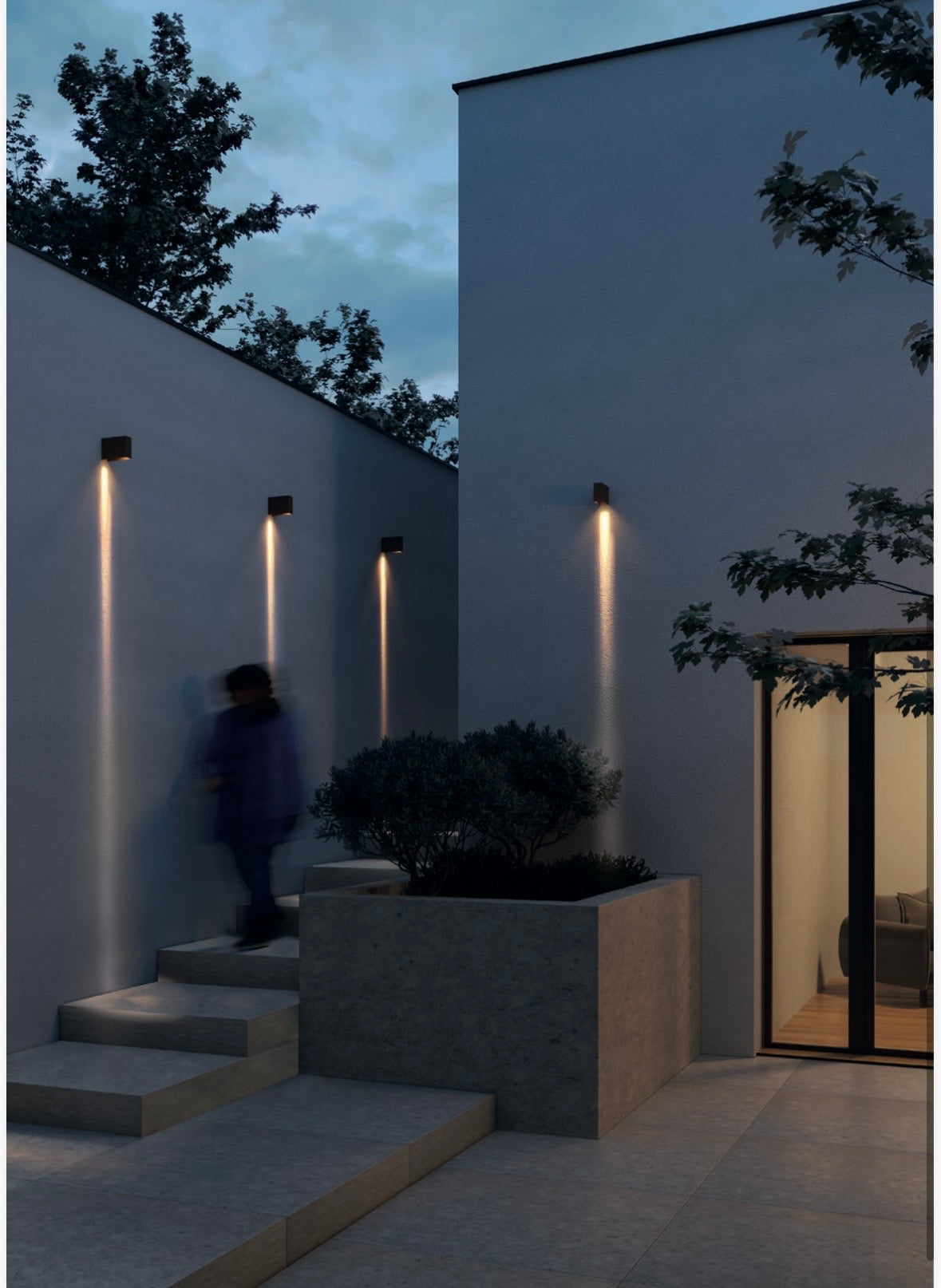 Il paletto/applique Izar è un elemento d'illuminazione versatile e dal design robusto, pensato per integrarsi con eleganza.