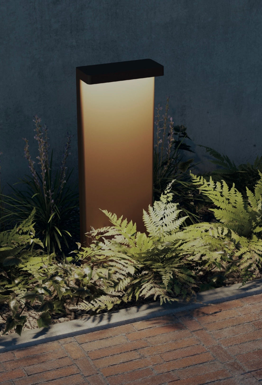 Il paletto luminoso Kant porta lo stesso design minimalista e lineare dell'applique, adattandolo perfettamente all'illuminazione di spazi esterni come giardini, percorsi pedonali, viali o ingressi. La sua struttura solida e verticale, si integra con discrezione nell'ambiente circostante, pur distinguendosi per la sua eleganza.