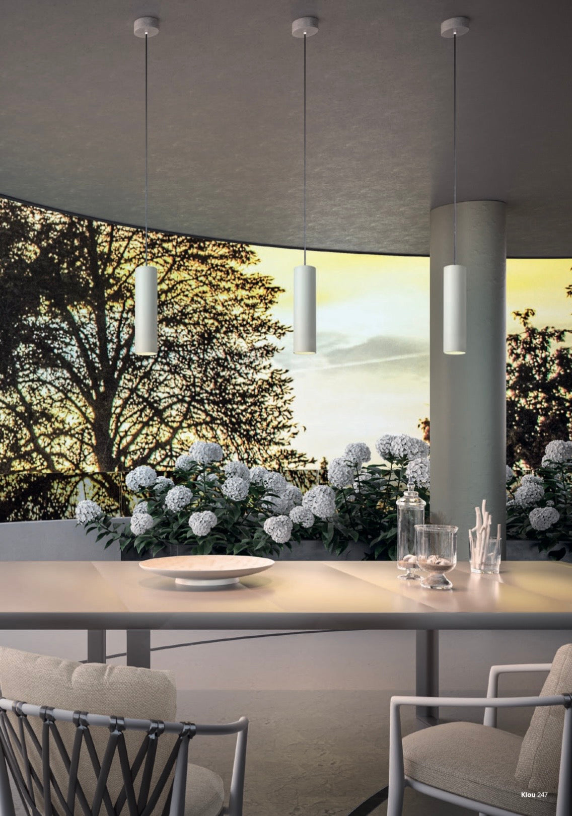 La sospensione Klou incarna l'essenza del design minimalista con la sua forma a cilindro, pulita ed essenziale. Questo lampadario, dalla silhouette snella e moderna, è progettato per focalizzare la luce in modo preciso e direzionale.