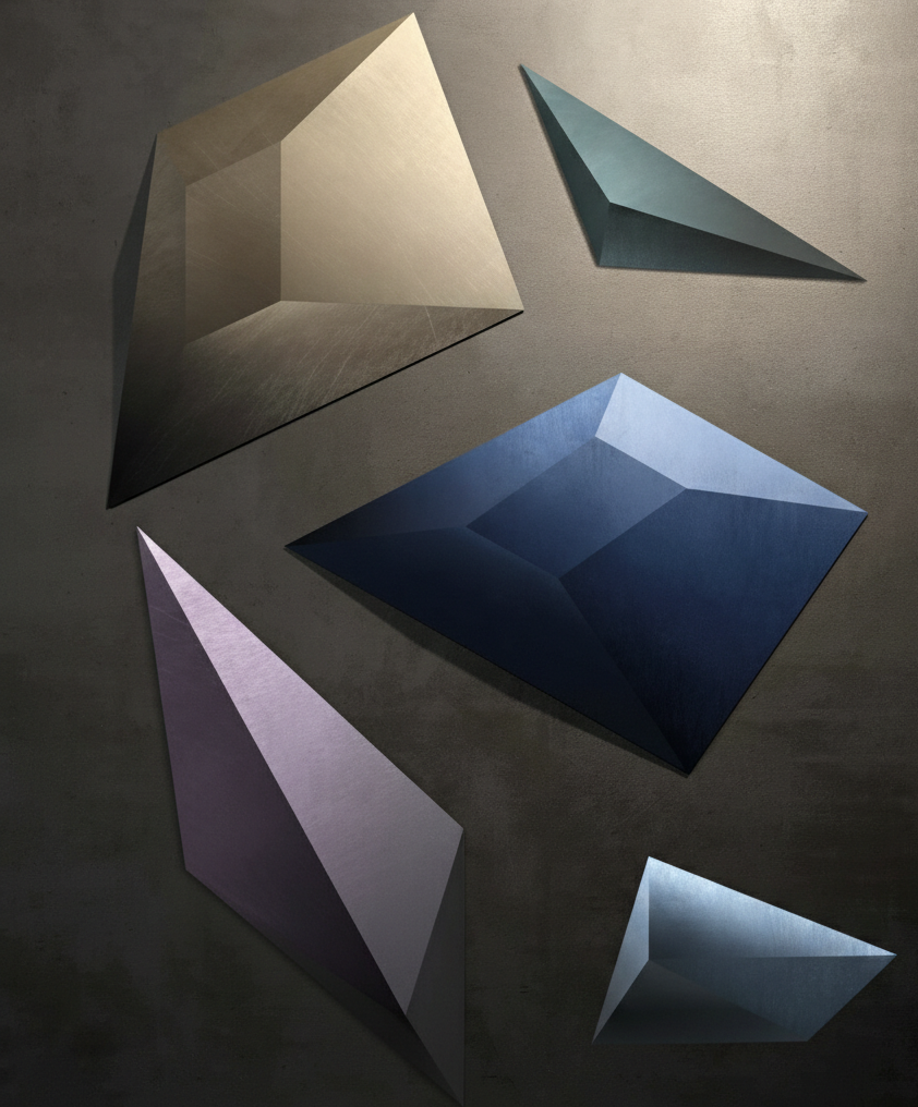 Kronos è una scultura modulare a parete che esplora il concetto di tempo attraverso la rigidità della geometria e la mutevolezza della luce.