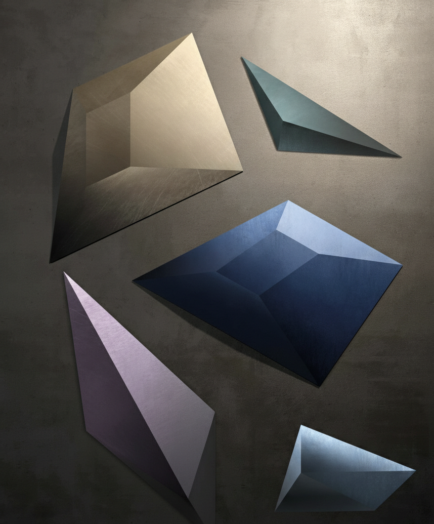 Kronos è una scultura modulare a parete che esplora il concetto di tempo attraverso la rigidità della geometria e la mutevolezza della luce.
