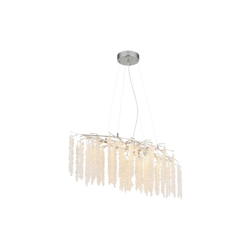 Il design si ispira alla delicatezza della natura, ricordando la fioritura di un glicine bianco o una cascata di ghiaccio scintillante. È la scelta ideale per chi cerca un elemento decorativo che unisca modernità, eleganza e un tocco di romanticismo.