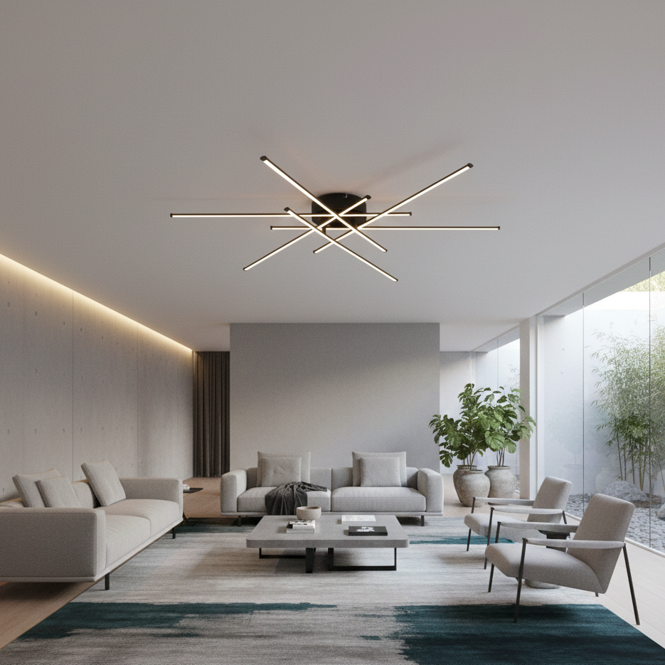 La plafoniera Lawson non è un semplice corpo illuminante, ma una vera e propria installazione d'arte contemporanea per il soffitto.