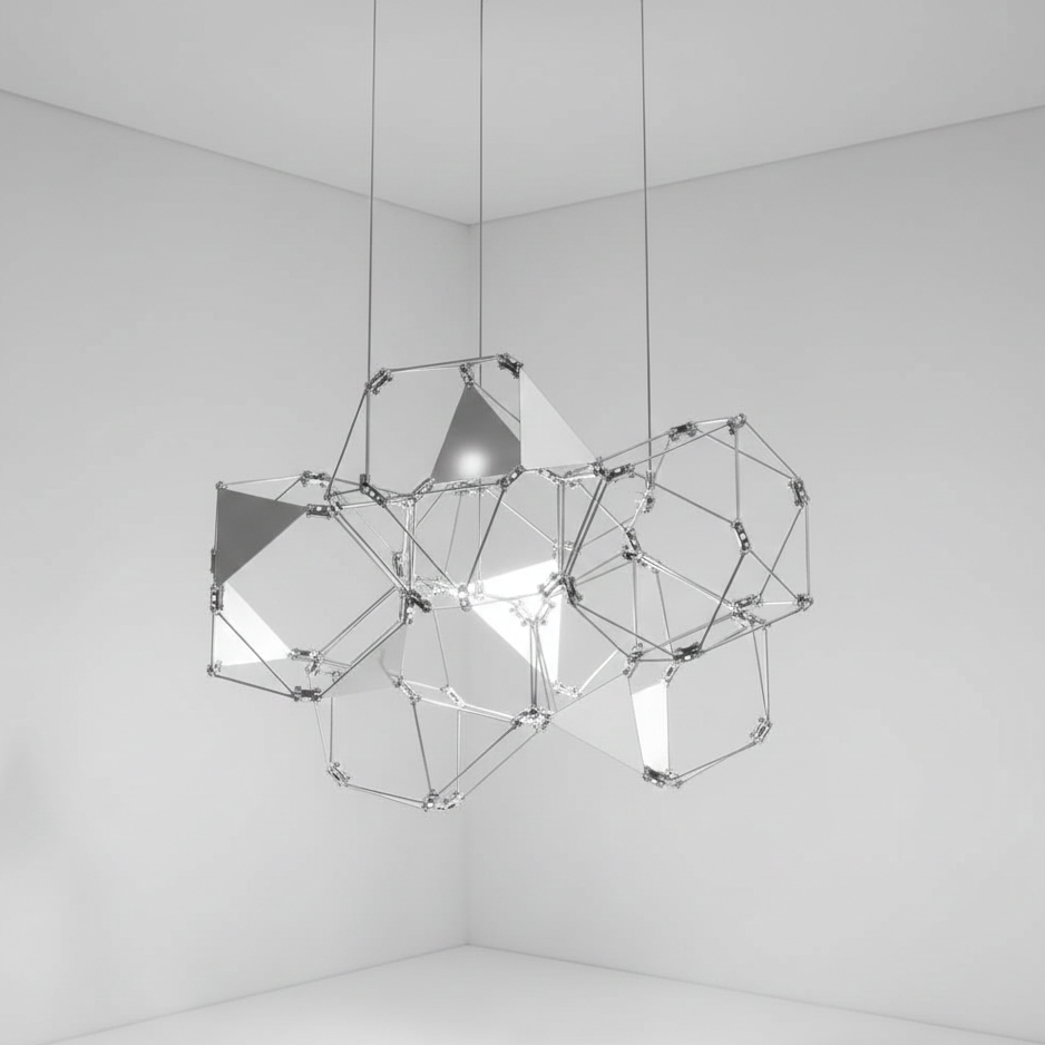 Lucciola Pro 5 Gabbie è una lampada a sospensione dal design moderno ed elegante che si contraddistingue per la sua struttura geometrica composta da 5 gabbie formate da asticciole di metallo disposte in modo da creare forme triangolari e quadrangolari. I diffusori LED integrati sono fissati ad ogni incrocio delle aste, enfatizzando il design geometrico della lampada e diffondendo una luce calda e omogenea nell'ambiente. La lampada è dimmerabile da controllo remoto, permettendo di regolare l'intensità della luce in base alle proprie esigenze. L'altezza della lampada è regolabile, per adattarsi a diverse configurazioni di arredo.