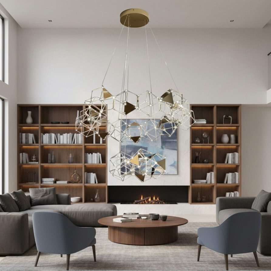 - Design moderno e geometrico su 2 livelli con forme triangolari e quadrangolari