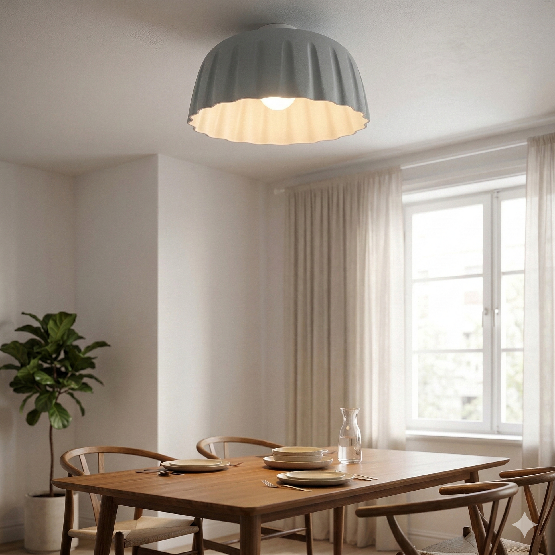 La plafoniera Madame è un omaggio alla raffinatezza senza tempo, reinterpretata attraverso un linguaggio moderno e vibrante. Caratterizzata da un paralume a cupola con una particolare lavorazione a plissé, questa plafoniera non è solo un corpo illuminante, ma un vero e proprio oggetto d'arredo capace di definire l'identità di un ambiente.