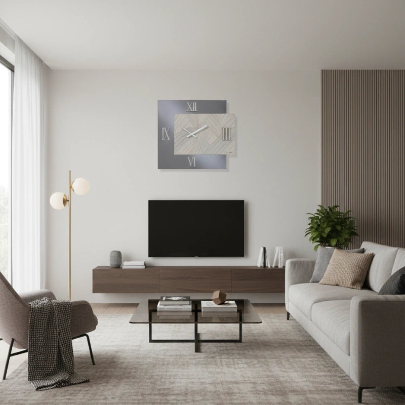 Mirka non è un semplice orologio, ma un vero e proprio elemento di design che cattura l'attenzione e arreda con personalità. Perfetto per un salone moderno o un ambiente di lusso, fonde magistralmente materiali e texture in un equilibrio visivo unico.
