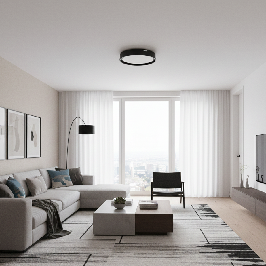 - Dimensioni: ø: 400mm, A: 85mm, incl. LED 24W 230V, 318-3366lm Source, 65-652lm Output, CCT 2700-6500K