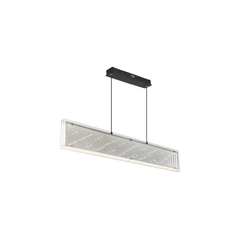 - Sospensione metallo nero satinato, alluminio nero satinato, vetro specchiato Effetto 3D, cristalli di plastica trasparente, metallo cromato, cavo PVC nero, Dimmerabile, Molteplici passaggi tramite interruttore a muro, Colore selezionabile, Funzione di memoria, Luce notturna, Timer, Altezza riducibile, Telecomando, Batteria inclusa 2x AAA
