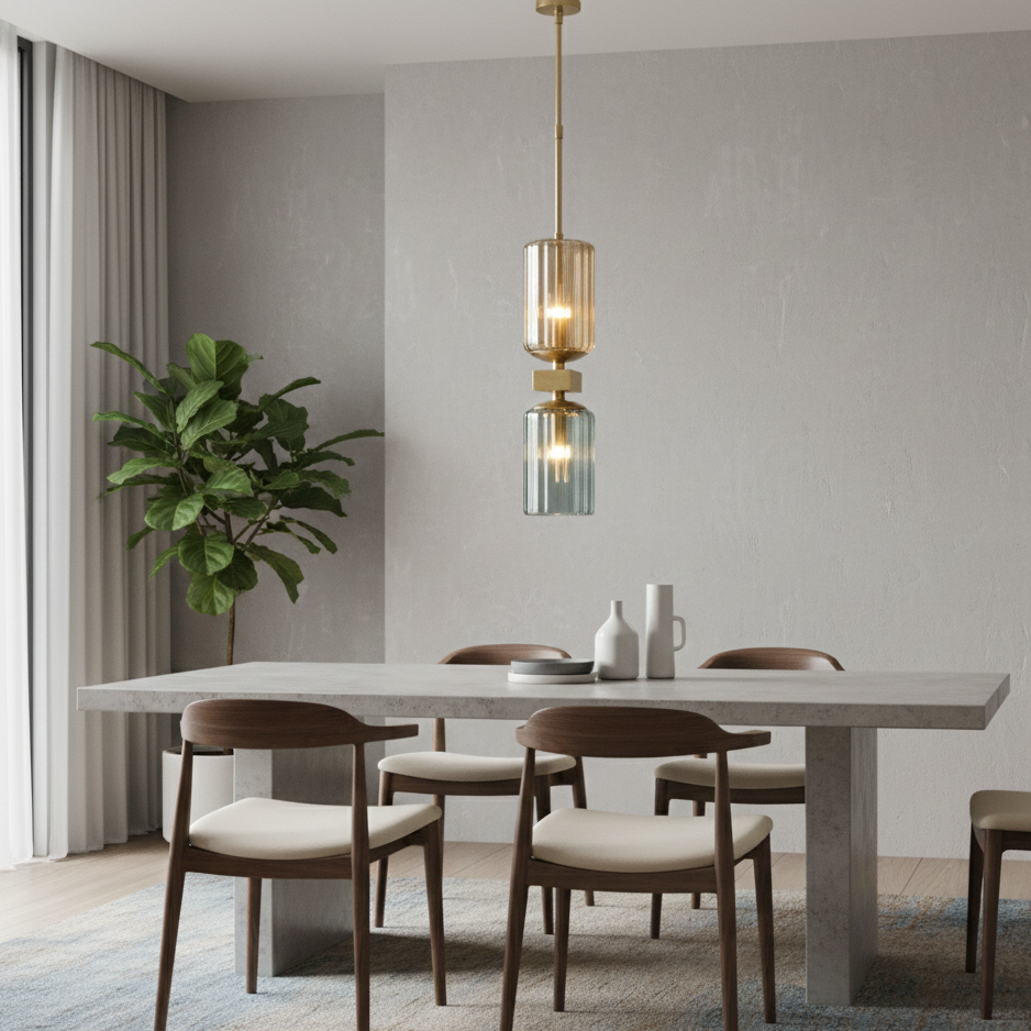 Il nuovo design della lampada a sospensione "Modern Glow" fonde eleganza e elementi naturali. Il suo apparato di illuminazione, dal design minimalista, si integra perfettamente con qualsiasi stile di arredamento, offrendo sia luce che estetica. Un piano di legno aggiunge un tocco di calore e texture al design complessivo, mentre un contenitore in vetro rivela la sua bellezza e trasparenza. Un apparecchio supplementare con paralume in vetro trasparente enfatizza la luce che si diffonde, creando un'atmosfera accogliente. Infine, una lampadina nel dispositivo emette una luce calda e morbida, che promuove un ambiente confortante e rilassante. In sintesi, la lampada a sospensione "Modern Glow" è un elemento di design versatile che unisce l'eleganza all'essenza naturale.