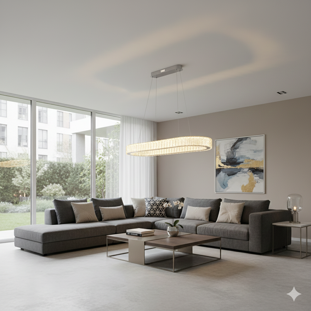 La sospensione MUCKY è un vero e proprio gioiello di illuminazione, progettato per chi desidera coniugare un’estetica moderna con il fascino senza tempo dei riflessi cristallini.