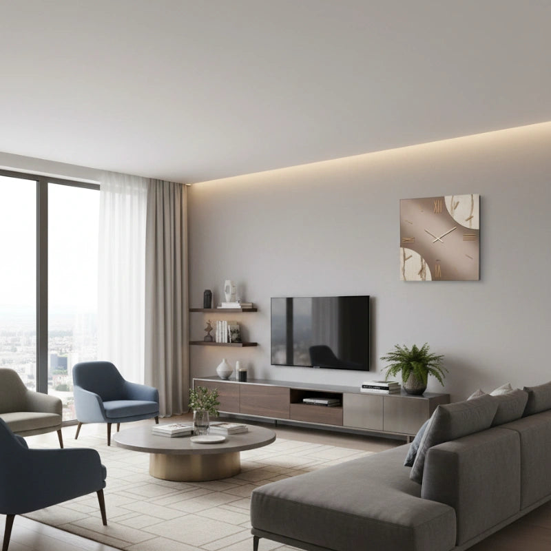 L'orologio da parete Muriel è una vera dichiarazione di stile per chi ama il design contemporaneo e sofisticato. Questo pezzo unico combina linee moderne con un tocco di lusso, trasformando un semplice oggetto funzionale in un'opera d'arte.