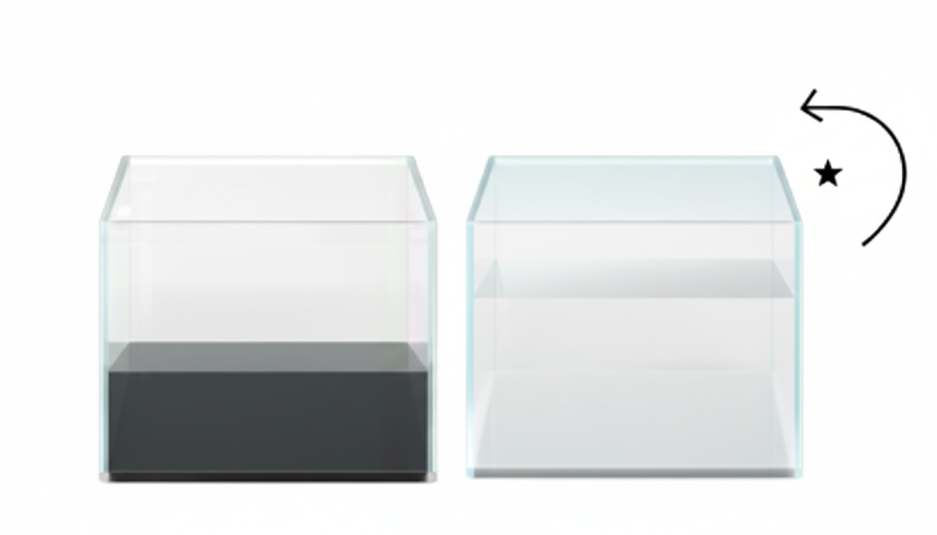 Teca espositiva porta oggetti in vetro extra white con basamento in MDF laccato.