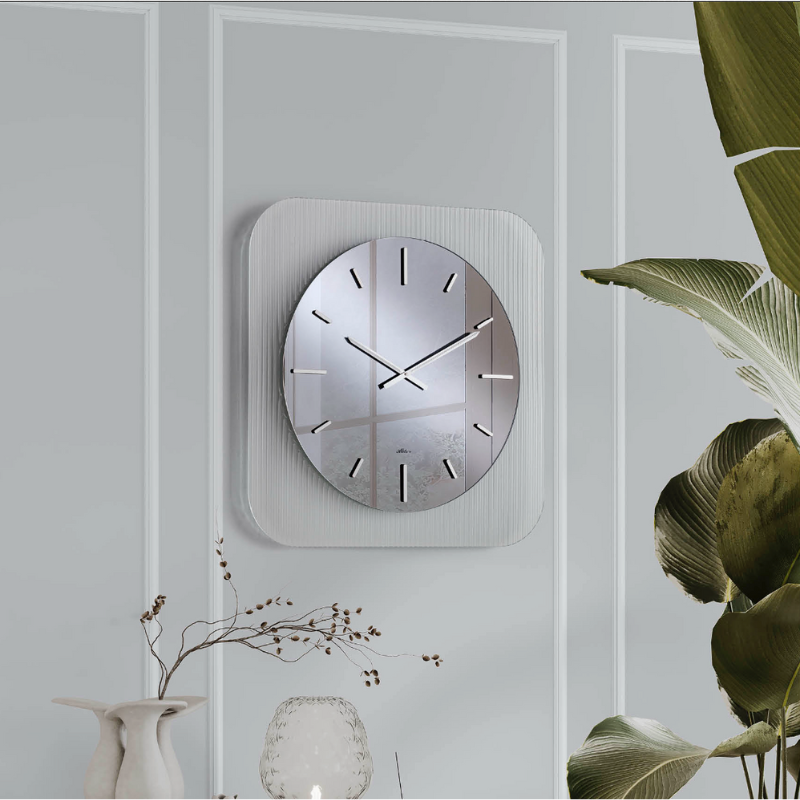 Questo orologio da parete unisce design contemporaneo e materiali raffinati per un complemento d'arredo elegante e distintivo.