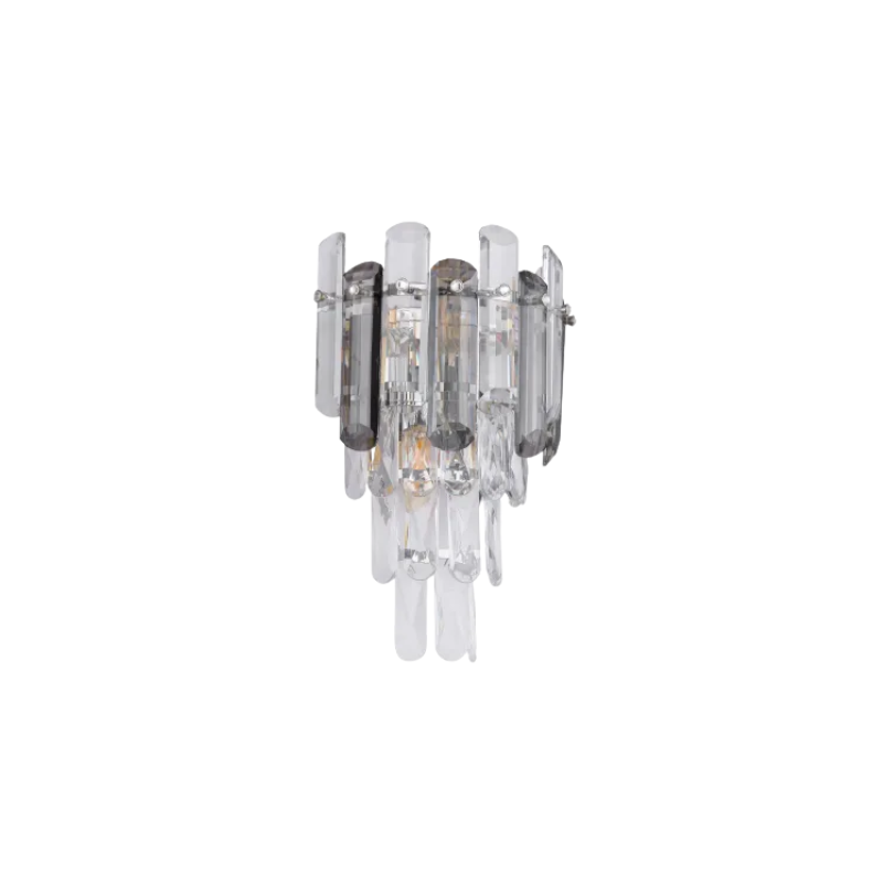 - Applique metallo cromato, cristallo in acrilico trasparente, bacchette di vetro color fumè, trasparente