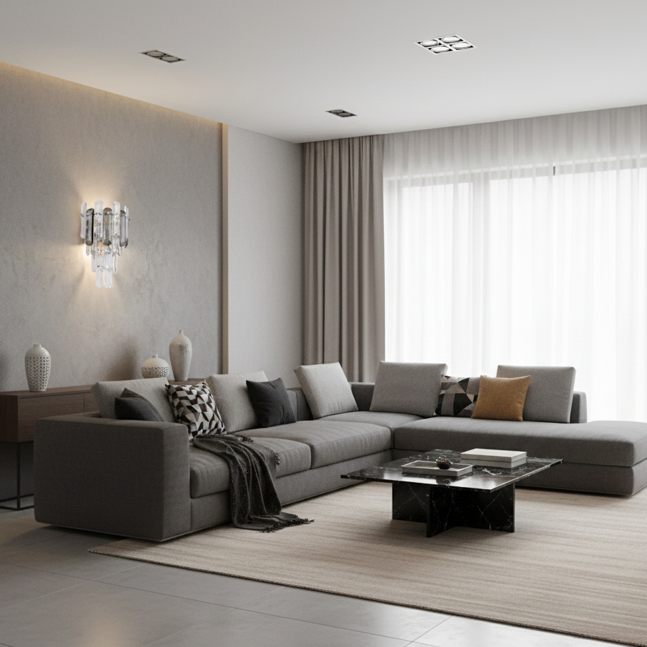 L'applique Orgina non è un semplice corpo illuminante, ma un vero e proprio gioiello da parete. Caratterizzata da un design sofisticato e architettonico, questa lampada fonde l'eleganza classica del cristallo con un rigore geometrico assolutamente moderno.