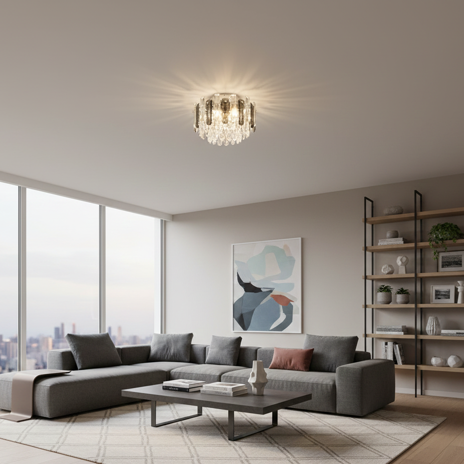 Eleva l'estetica dei tuoi ambienti con la plafoniera Orgina, un complemento d'arredo che fonde magistralmente eleganza classica e design contemporaneo.