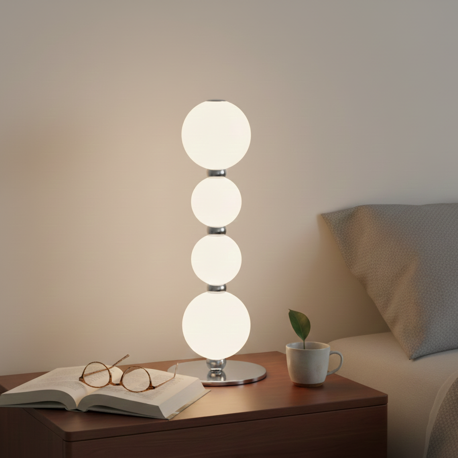 Perla è una lampada da tavolo dal design moderno ed elegante, ispirata alla preziosità delle perle. I suoi diffusori in vetro opaco diffondono la luce in modo morbido e uniforme, creando un'atmosfera accogliente e rilassante. La montatura cromata dona un tocco di raffinatezza alla lampada, rendendola un complemento d'arredo perfetto per qualsiasi ambiente, dal soggiorno alla camera da letto.