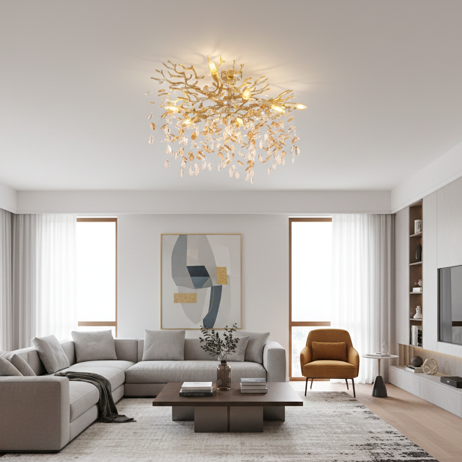 La plafoniera Queena è un vero e proprio gioiello di design che trasforma l’illuminazione in una forma d’arte scultorea.