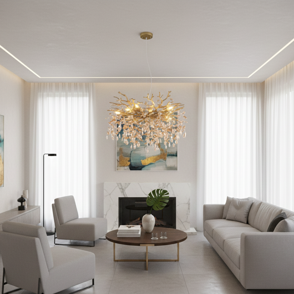 La sospensione Queena è un vero e proprio gioiello di design che trasforma l’illuminazione in una forma d’arte scultorea.