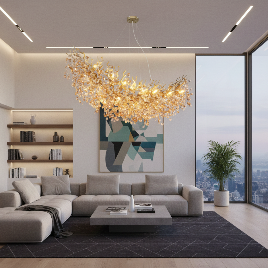 La sospensione Queena è un vero e proprio gioiello di design che trasforma l’illuminazione in una forma d’arte scultorea.