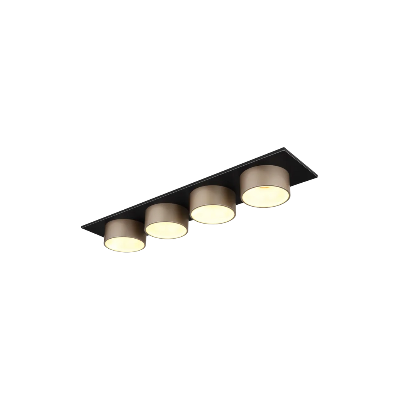 - Plafoniera metallo nero satinato, plastica antracite, plastica color champagne satinato, plastica opale