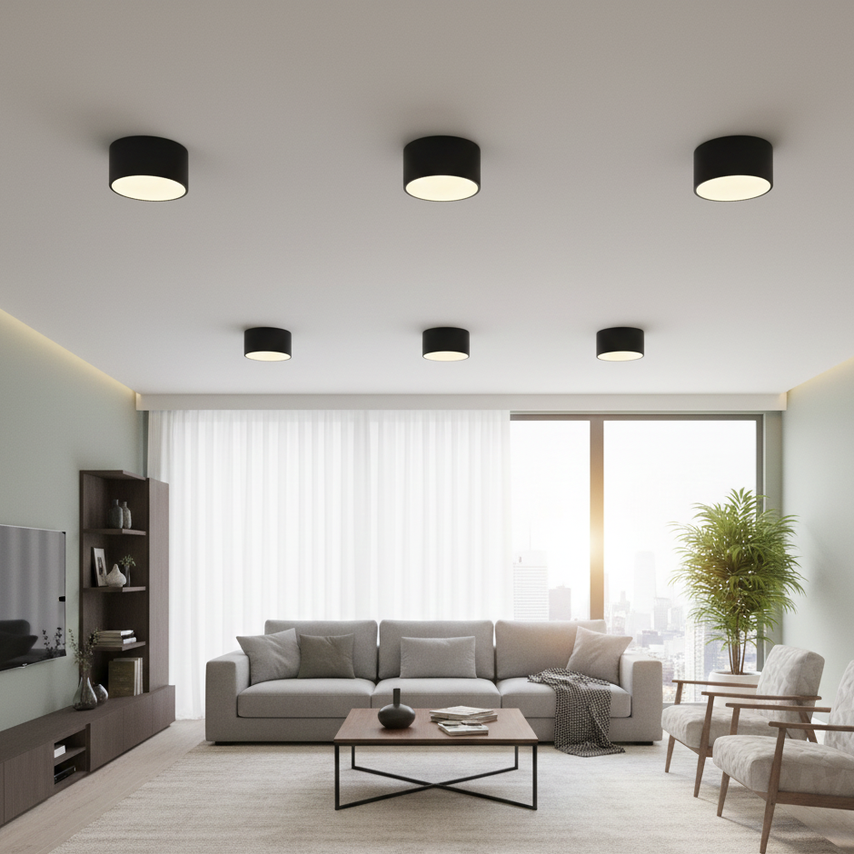 - Plafoniera metallo bianco satinato, plastica nero satinato, plastica opale