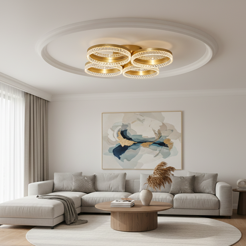 Regina a 4 Cerchi è versatile e può essere installata sia come lampada a soffitto che come lampada a parete, adattandosi perfettamente a diverse esigenze di illuminazione.