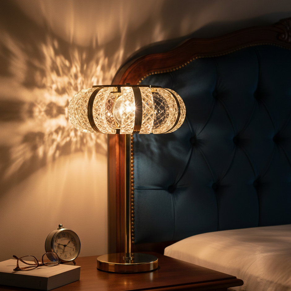 Retrò è una lampada da tavolo in stile retrò che si distingue per il suo design elegante e raffinato. Il diffusore in acrilico con taglio a diamante crea un effetto luminoso scintillante, mentre la finitura oro lucido della montatura aggiunge un tocco di lusso. La lampada è dotata di un LED integrato da 18W che garantisce un'illuminazione potente e a basso consumo energetico. La temperatura colore di 3000K crea un'atmosfera calda e accogliente, perfetta per qualsiasi ambiente.