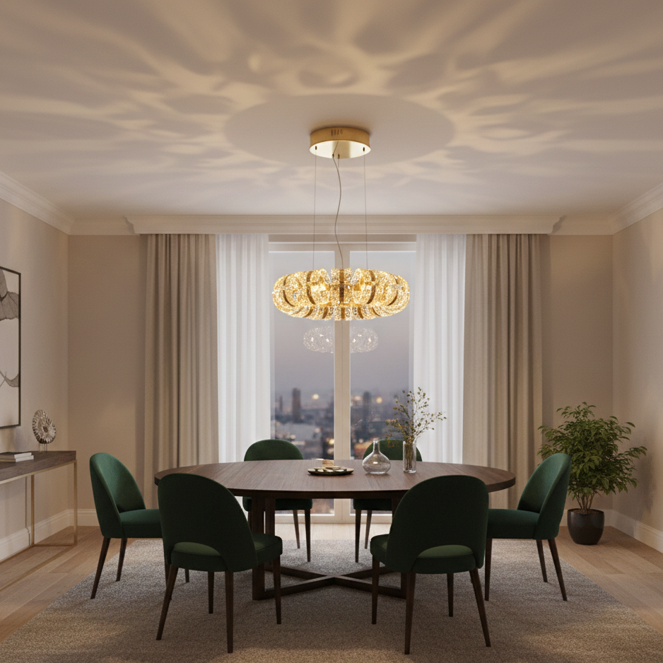 Retrò è una sospensione a cerchio piccolo in stile retrò che si distingue per il suo design elegante e raffinato. Il diffusore in acrilico con taglio a diamante crea un effetto luminoso scintillante, mentre la finitura oro lucido della montatura aggiunge un tocco di lusso. La sospensione è dotata di un LED integrato da 74W che garantisce un'illuminazione potente e a basso consumo energetico. La temperatura colore di 3000K crea un'atmosfera calda e accogliente, perfetta per illuminare con stile qualsiasi ambiente.