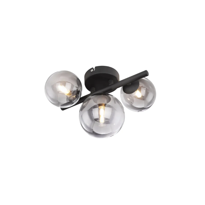 - Plafoniera metallo nero satinato, vetro color fumè