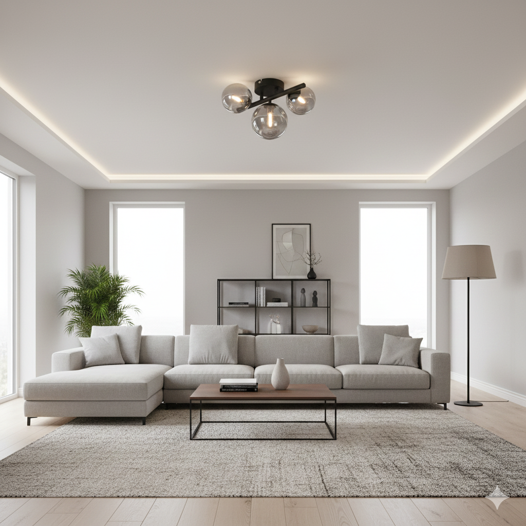 La plafoniera Riha è la sintesi perfetta tra minimalismo contemporaneo e fascino retrò.
