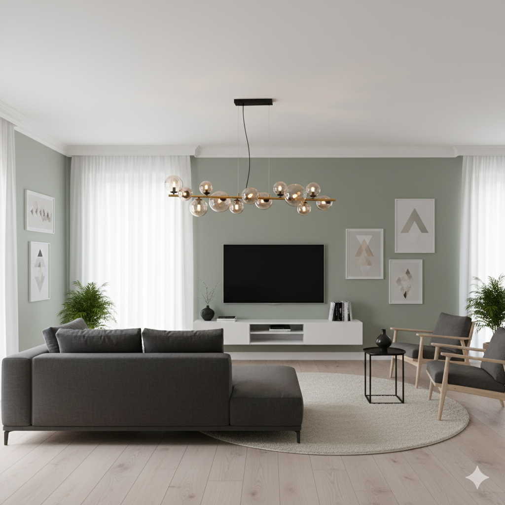 La sospensione Riha è un vero e proprio pezzo d'arredo contemporaneo che fonde estetica minimalista e un tocco di ispirazione "space-age".